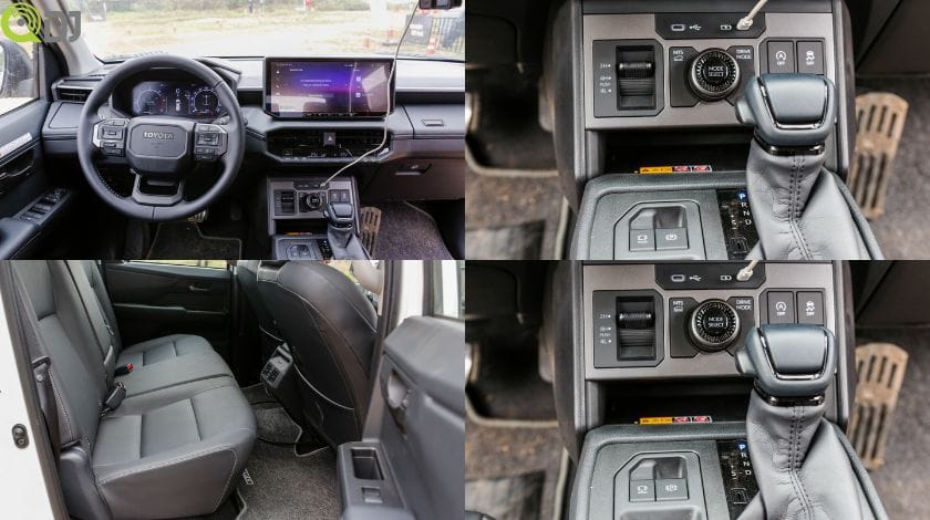 Vô-lăng của Hilux 2026 được bê nguyên từ “huyền thoại” Land Cruiser 300 với các nút bấm chắc chắn. Ngoài ra, núm xoay số nhỏ gọn và bộ chọn chế độ lái được bố trí tinh tế tại bảng điều khiển trung tâm, mang lại cảm giác lái cao cấp.