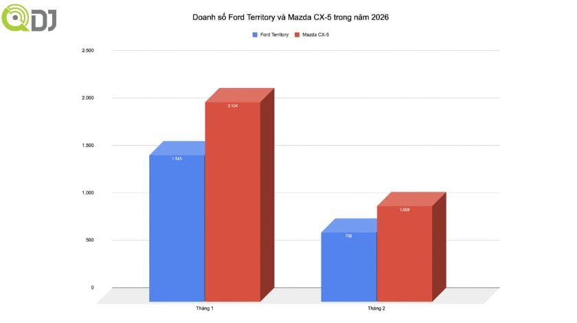 Tính chung 2 tháng đầu năm 2026, Ford Territory đã bàn giao 2.275 xe đến tay khách hàng, giữ vững vị trí thứ 2 trong phân khúc. Dù Mazda CX-5 vẫn đang dẫn đầu với 3.112 xe, nhưng với bảng giá mới “mềm” hơn đáng kể, cán cân doanh số trong quý II/2026 dự kiến sẽ có nhiều biến động bất ngờ.