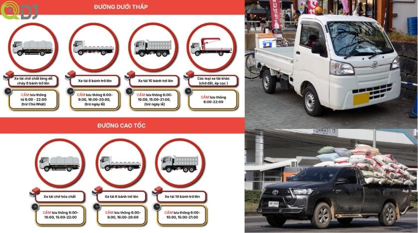 - Quy chuẩn 41: Xe bán tải có khối lượng chuyên chở cho phép dưới 950kg được coi là xe con trong hệ thống báo hiệu đường bộ. Tuy nhiên, tại các thành phố lớn như Hà Nội, dòng xe này bắt đầu bị siết chặt khung giờ vào trung tâm để giảm áp lực hạ tầng.